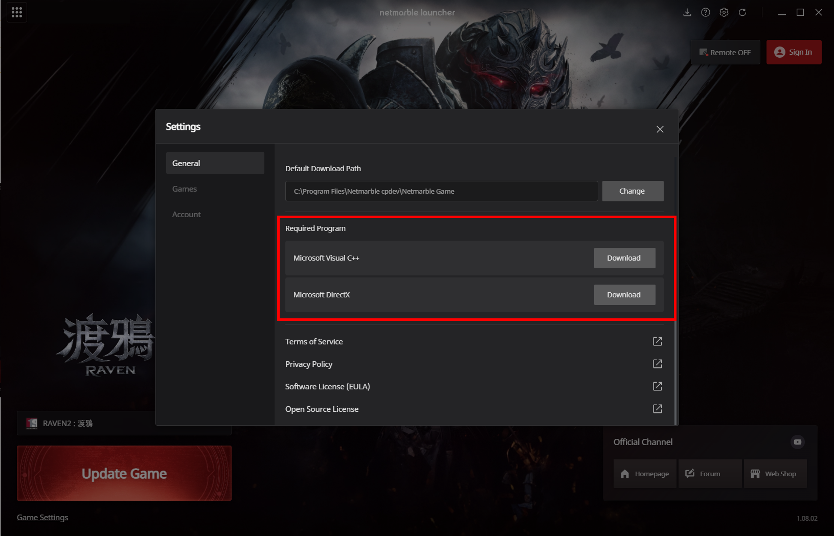 1. En caso de una ventana emergente del sistema de Visual C++ o DirectX, <mark style="color:red;">haz clic en el icono de «Ajustes» en la parte superior del lanzador</mark>.